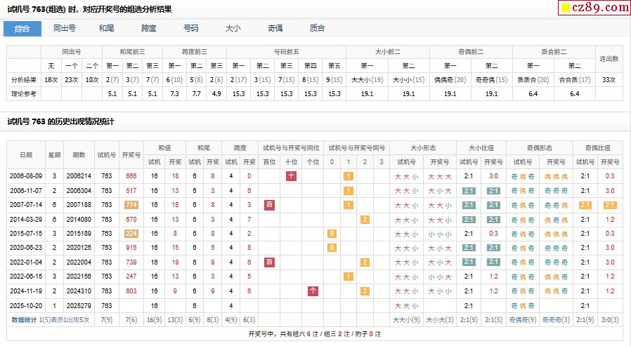 279期福彩3D试机号763对应开奖号的组选分析结果-【3d试机号千禧3d试机号关注码金码】_3d开机号和试机号最新_3d福彩试机号开机号_今天排列三开机号_开奖号码33