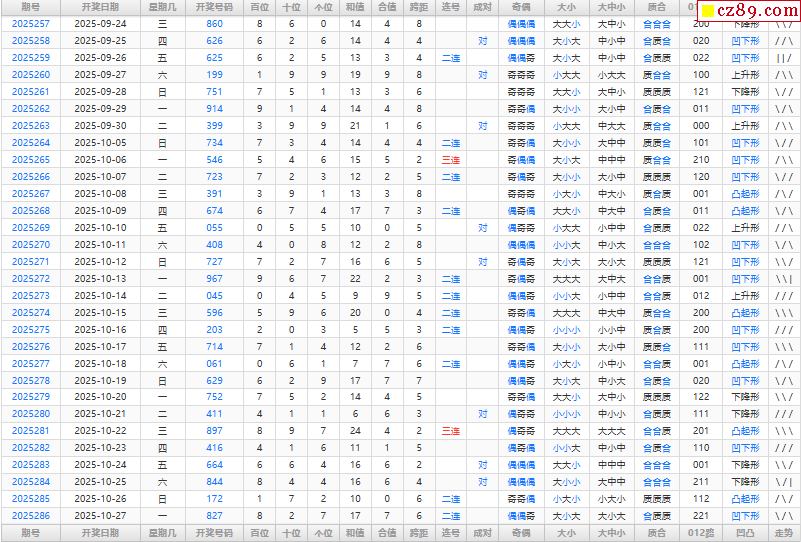 首页 > 福彩3D预测 > 25年287期福彩3D综合统计表